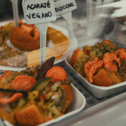 - Acarajé – deep-fried black-eyed pea fritters, split open and stuffed, most famously with vatapá.