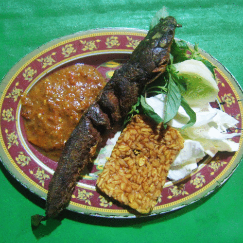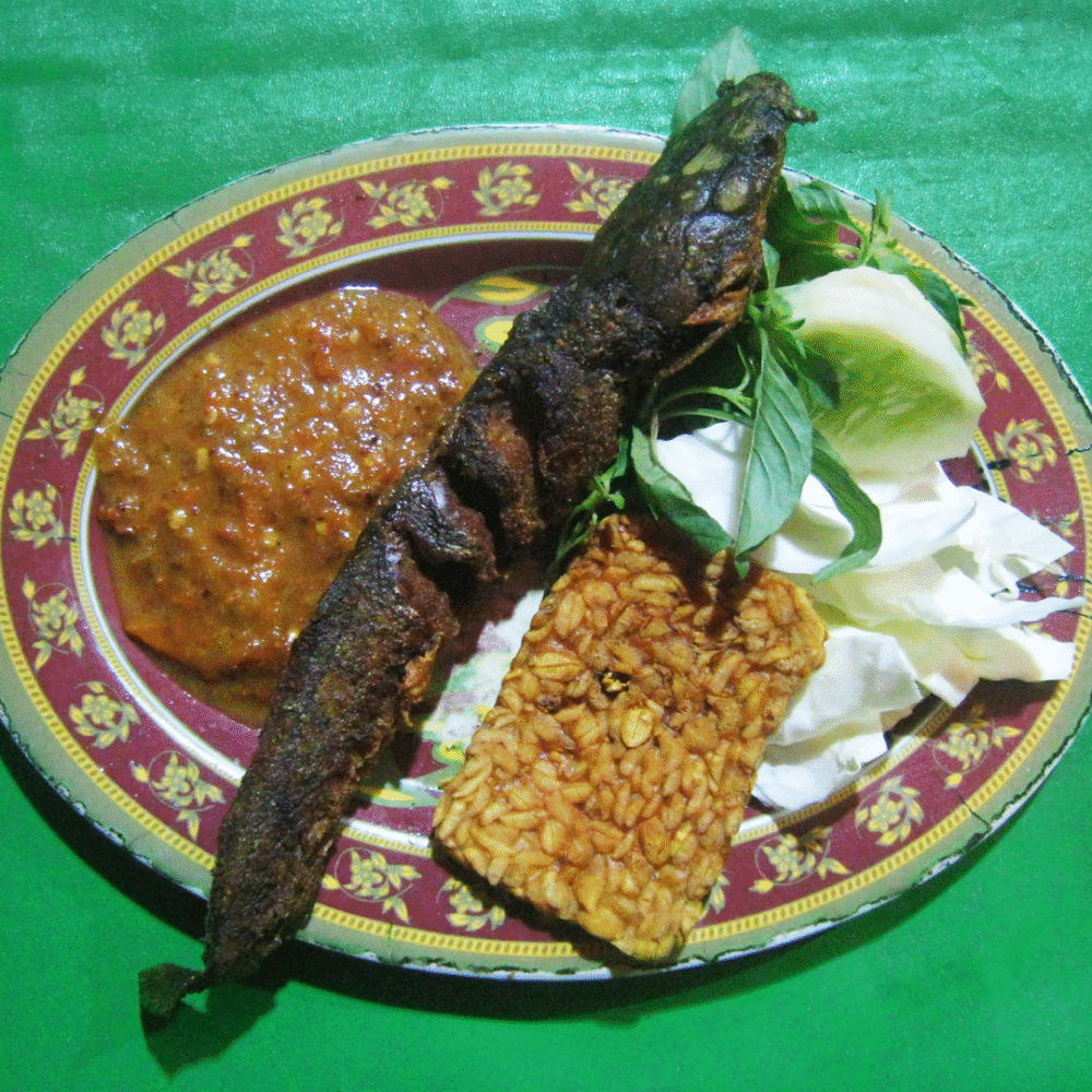 With the world’s second-longest coastline, fish is a key daily protein. Indonesian fish dishes go beyond simply emphasizing the “natural taste” of fish. A popular dish is grilled ikan bakar, which uses turmeric, garlic, and lemongrass with the goal of creating a balance between the freshness of the fish and the nuances of spices. Frying whole fish is also common but involves a light starch coating, allowing flesh to remain crispy yet tender inside. Fried fish is often paired with sweet kecap manis. Indonesian steamed fish in banana leaves has subtle, earthy flavors; the dish preserves moisture and freshness. It asks to be paired with steamed rice, sambal, and lalapan salad as a side.