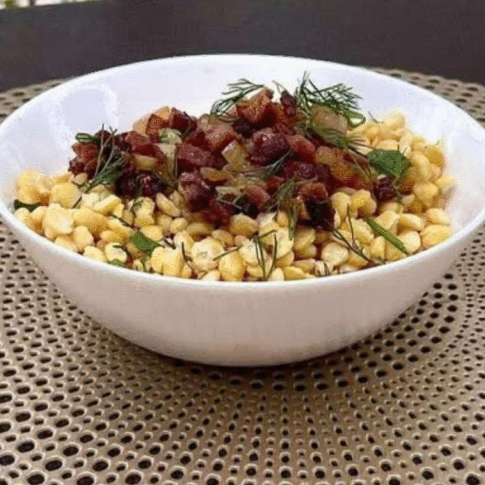 Pulses have some traditional presence in local cuisine, but not an important one. Historically, peas and broad beans were the main ones, especially before potatoes became widespread. They were eaten boiled, mashed, or mixed with grains during fasting periods and by poorer households. Lentils, chickpeas, and other pulses are modern additions.