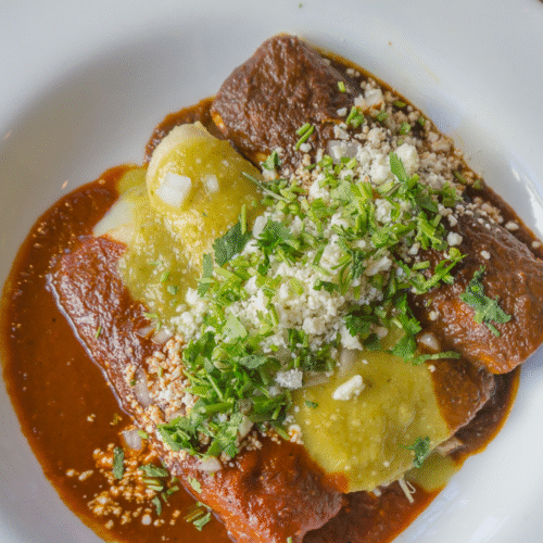 The common misconception is that all Mexican food is spicy. While chiles are staples in most dishes, they’re equally used for their distinct flavors, aromas, and colors as much as for their heat. Often, chiles are roasted, seeded, or soaked to reduce heat, paired with yogurt and citrus. In contemporary Mexican dining, it’s entirely possible to enjoy a full Mexican meal without spiciness. On the other hand, toddlers in Mexico start eating mild chile peppers with salsas at a young age; this gradual introduction is seen as a form of cultural integration.