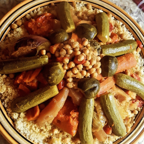 Vegetables are essential, though quantities consumed are comparatively low. Due to economic disparities, some struggle with the affordability of certain foods, including fresh vegetables. Unlike the raw vegetable salads familiar in many Western cuisines, cooked salads are popular in Morocco. They feature eggplants, tomatoes, peppers, and carrots, often roasted or stewed and then served at room temperature or chilled. Vegetable pickles from carrots, cucumbers, turnips, cauliflower, and green beans are common.